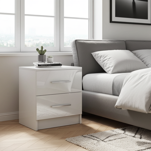 Melbourne White 2-Drawer Nightstand | Glossy Front