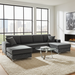 Our four-seat chaise sectional has the look, feel, and design of a truly contemporary piece of furniture, featuring clean lines and velvet accents. With neutral colors and curved over seamless edges, this set brings out a simplistic style that emphasizes comfort and functionality.